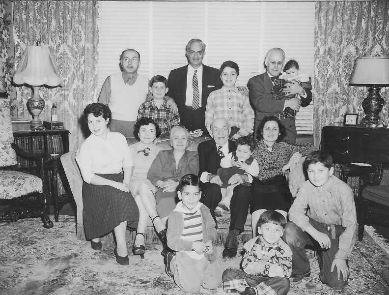 (Standing) Uncle Don, John Donelian?, my father, unknown, Uncle Steve (holding ??). (seated) Auntie Armine, my mom, grandma & grandpa (holding Donna), Auntie Lillian (floor) me, Armen and Gary Donelian. (is this correct??)