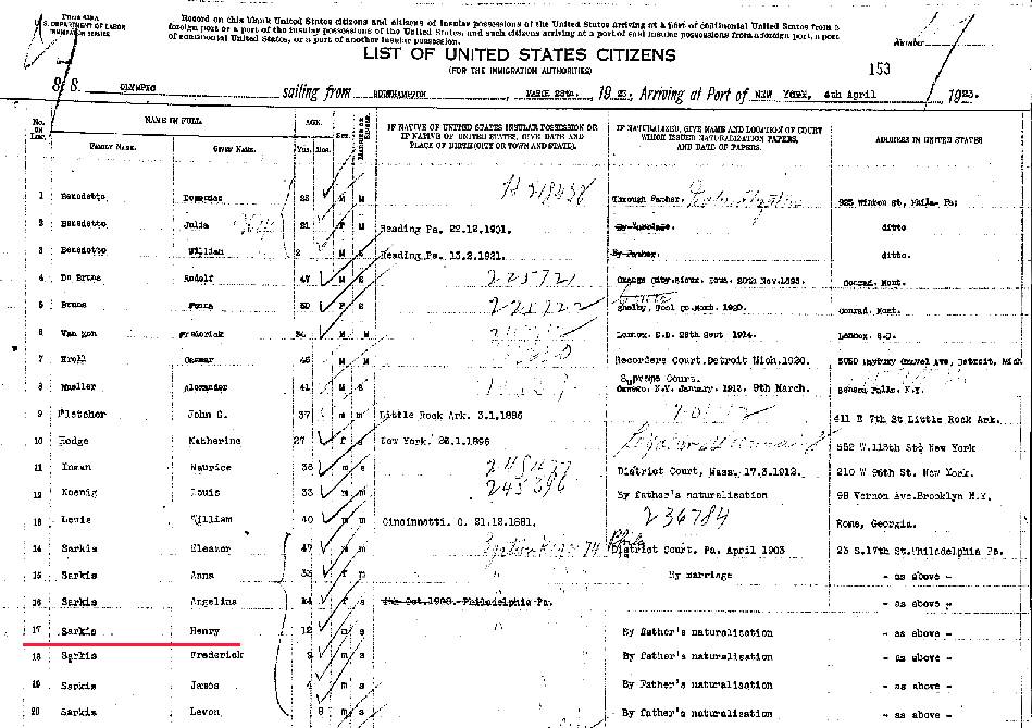 My father arrived in New York on April 4, 1923. The trip from Southampton took seven days.
