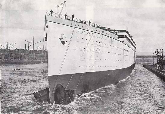 Olympic was launched at 1100hrs on October 20, 1910. She took 62 seconds to become waterborne and reached 12.5 knots as she slid down the slipway. At the time of her launch she was the largest ship in the world but her sisters were both fractionally larger when completed. |