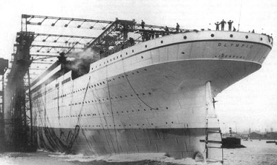 In the presence of Bruce Ismay, Lord Pirrie, the Lord Lieutenant of Ireland, the Lord Mayor of Belfast and a huge crowd, the Olympic was launched. Both the British and the American flag were hoisted and flags at the stern spelled out the word ’Success’. |